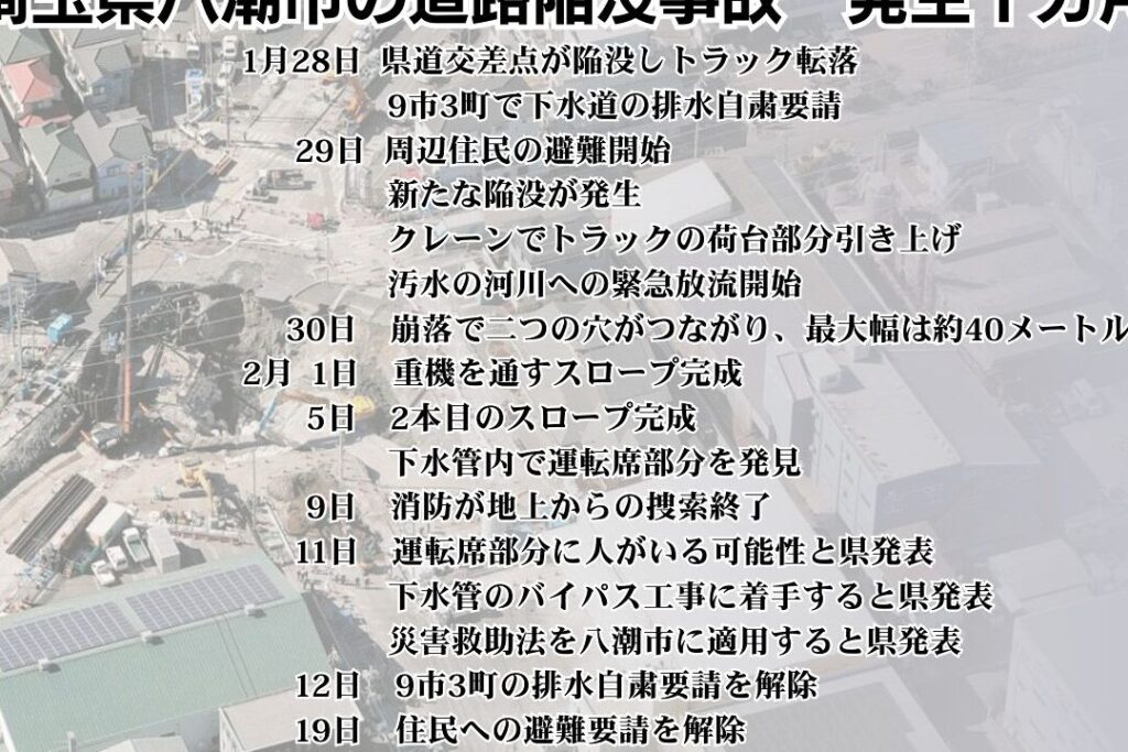 八潮陥没事故は私たちにとって深刻な警鐘を鳴らす出来事でした。この事故を通じて地域の安全やインフラの重要性を再認識しました。今後の再発防止策が実施されることで、私たちの生活環境がより安全になることを期待しています。