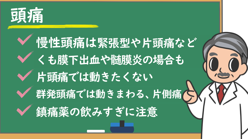 - 頭痛の種類:例として、緊張型や片頭痛
