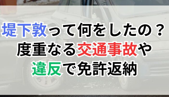 堤下敦さんの事故は、彼の人生において複数回発生しています。これらの事故の影響は、彼のキャリアや生活に大きな影響を与えました。特に、2017年に発生した事故は、彼の公私にわたる混乱を引き起こしました。