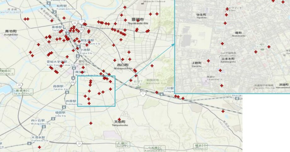 地図を使用すれば、これらの場所を視覚的に確認できます。加えて、各地点の事故件数も把握でき、安全対策に役立てられます。
