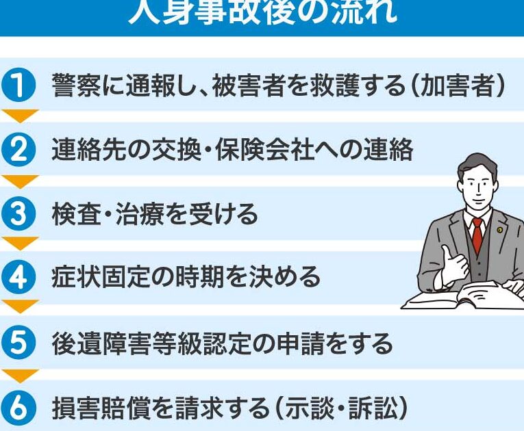 人身事故が発生した際には迅速な対応が求められる。以下に、事故後の重要な手順を示す。