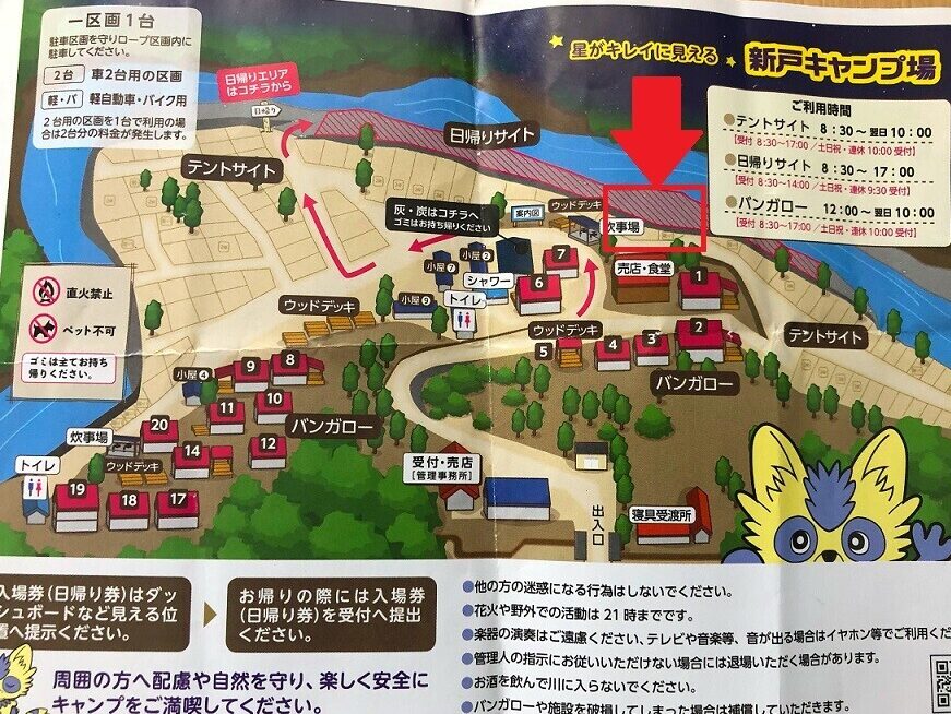 訪問者が迷わないように、キャンプ場内の誘導表示を改善します。掲示される情報は簡潔で、視認性が高いものとします。