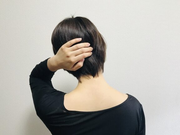 - 筋肉のこわばり:首の周囲の筋肉が緊張し、動かしにくくなることが起こります。