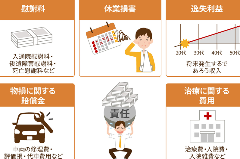 賠償金は事故の種類や被害状況によって異なります。以下に具体的な賠償金額の例を示します。