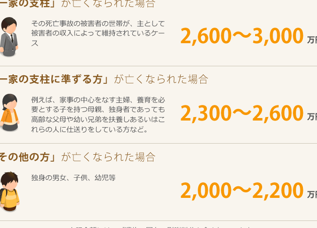 交通事故による死亡保険金の額は、いくつかの要因によって決まります。そのため、保険の種類や契約内容に応じて異なる計算方法が適用されることがあります。