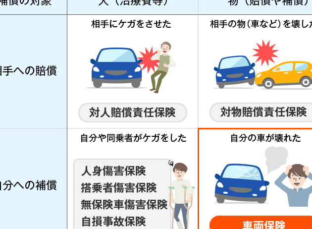 - 物損事故: 道路の障害物や他車と接触し、損害が発生した場合。