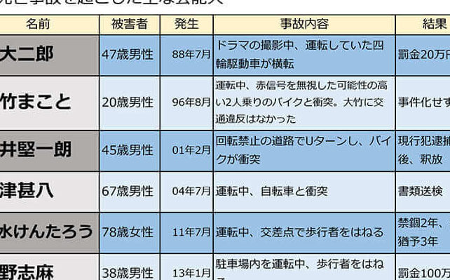 日本の芸能界で交通事故によって亡くなった芸人は数人います。以下にその一部を紹介します。