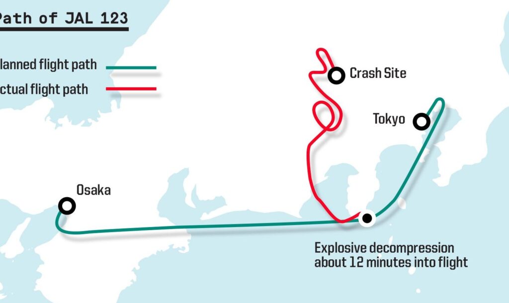 本来の目的地は伊丹空港であり、東京の成田空港から出発した便は、大阪への重要な交通手段でした。私たちのデータによると、伊丹空港は1985年当時、日本国内での航空旅行の中心地の一つでした。したがって、この空港に着陸することは、乗客の多くにとって期待されるものでありました。