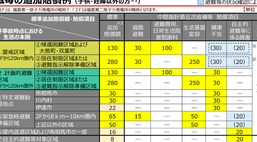 政府や原発事業者は、賠償金額を決定する際に様々な基準を考慮し、例えば、原発近隣の地域に住む方々は、直接的な影響を受けやすいため、特別な配慮がなされていることがあります。